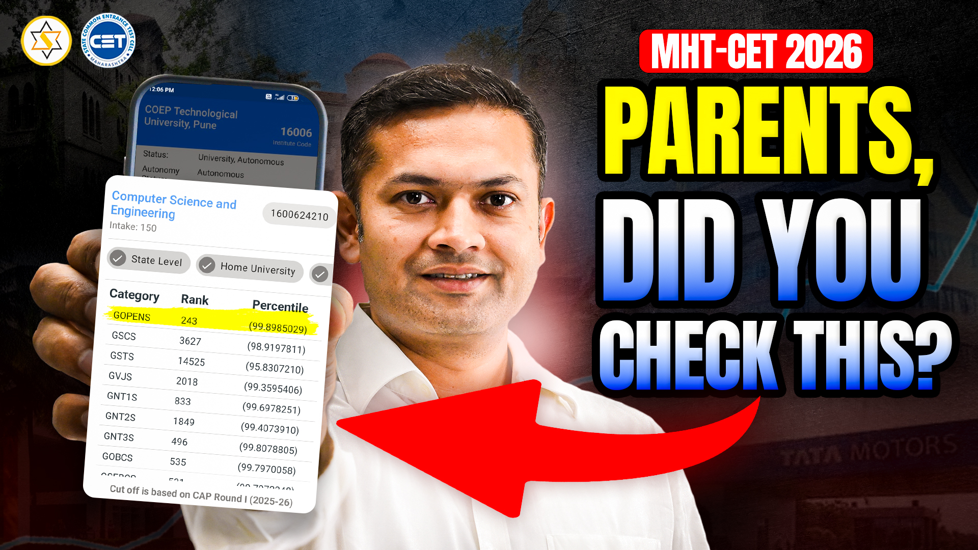 CAP Round Guide Parent Guide By Kalpesh Hiwase | Updated: April 2026 | 10 min read Caste validity certificate cost a student his COEP seat – and it can cost you yours. A student named Kunal got allotted COEP College – Electronics branch through the reserved category in MHT-CET CAP rounds. One of Maharashtra’s top … Read more